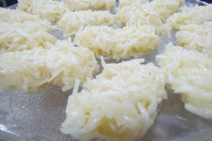 - Modele bolinhas pequenas e achate levemente com as mãos.