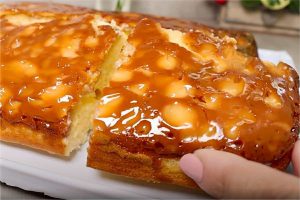 - Despeje a calda quente sobre o bolo ainda morno para que fique molhadinho.