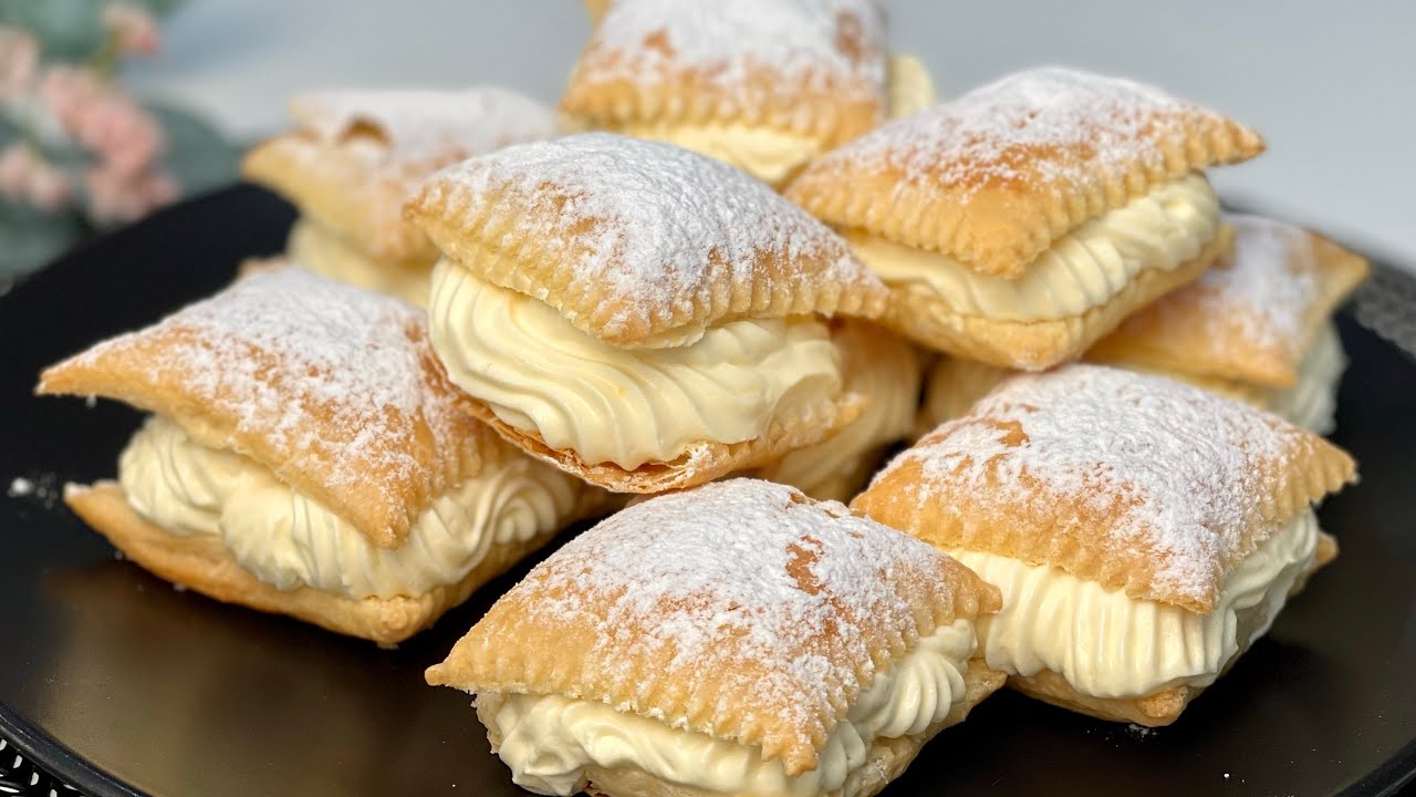 Essa Bomba de Creme é daquelas sobremesas que desaparecem da mesa em poucos minutos. Com uma base de massa folhada dourada e crocante, ela recebe um recheio cremoso e delicadamente aromatizado com casca de limão, que traz frescor e equilíbrio ao doce. A mistura do creme cozido com o chantilly deixa a textura ainda mais leve e aerada, resultando em um recheio suave, sedoso e irresistível.
