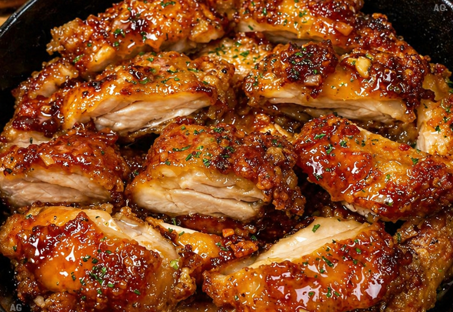 Frango crocante por fora, suculento por dentro e envolvido em um molho de mel com alho cheio de sabor, combinação simples e irresistível.