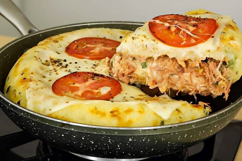 - Enfim, é só servir e se deliciar com esse incrível lanche de frigideira!